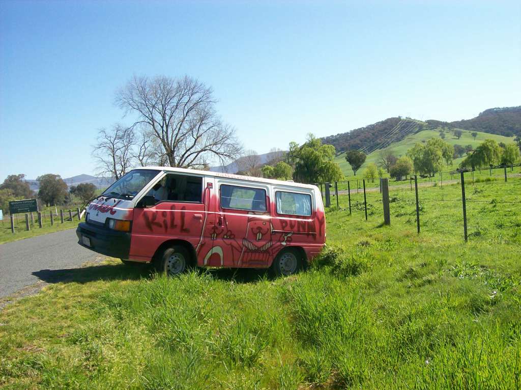 This is a story about the first camper van that we loved. It was a remarkable pink and white van from Wicked Campers in Australia. It’s name was “Kill Bunny.” We didn’t name it. The name was painted all over it.