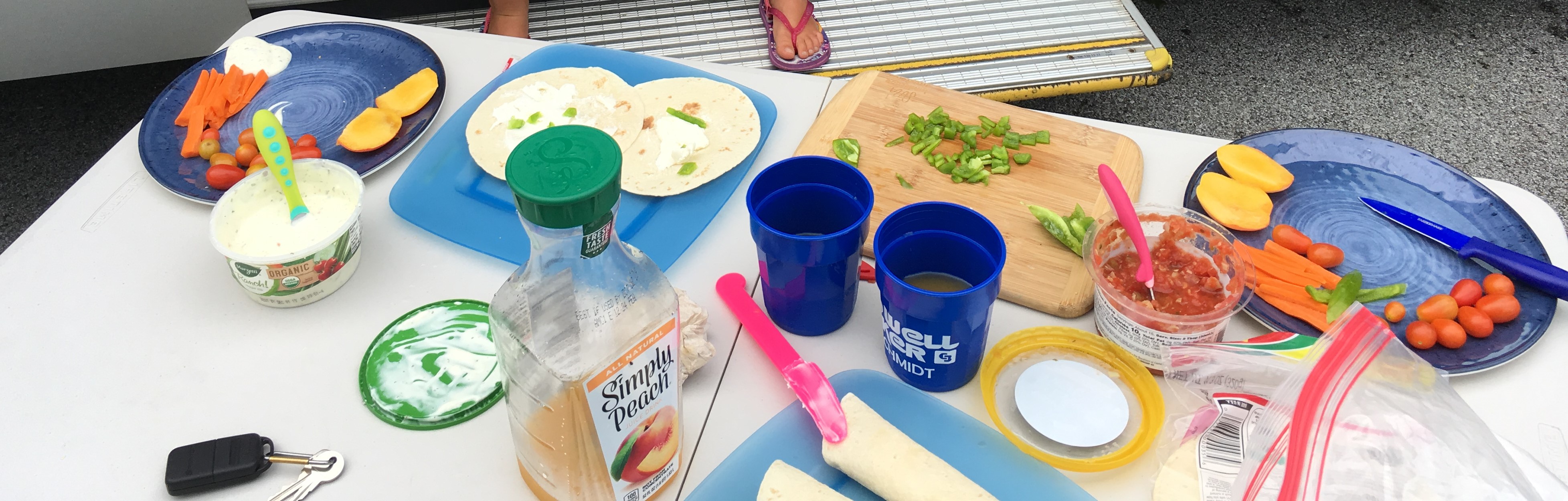 I cooked lunch on a our camping table in the parking lot of an abandoned department store in Idaho. We ran laps to the lamp post and back. It wasn’t our usual picturesque lunch at a park or splash pad but it was okay.