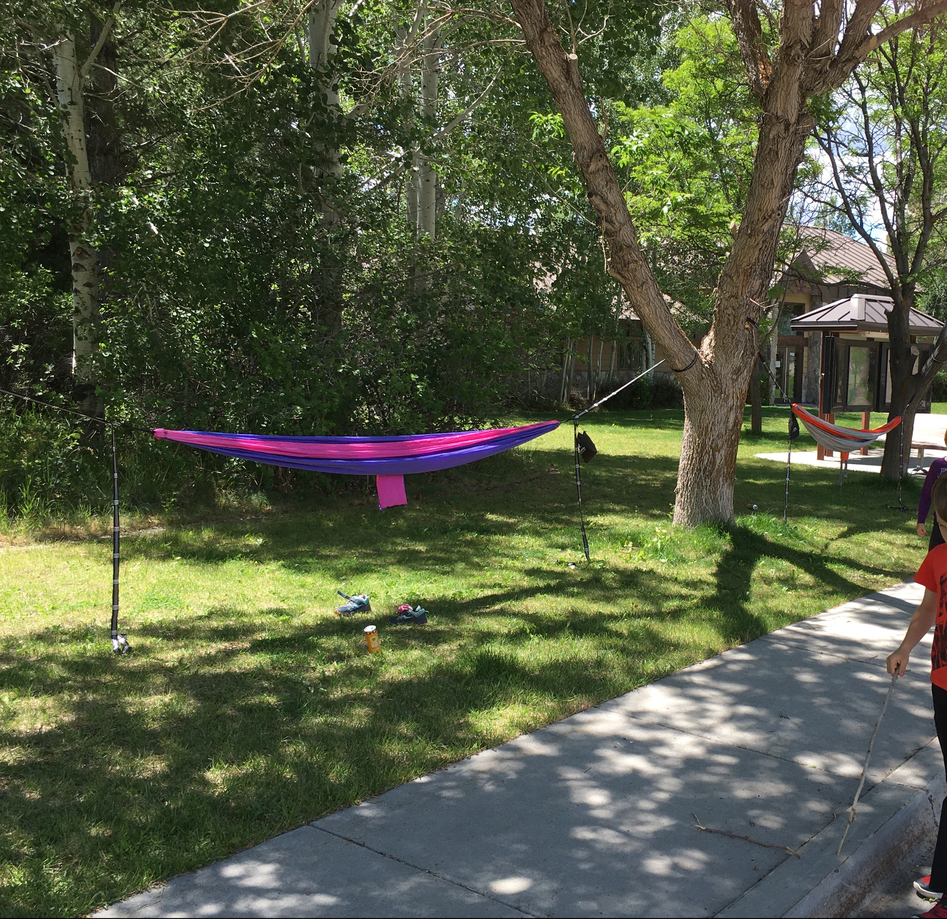 CD and the kids spent two hours in a National Forest Service Parking lot in Utah. I was on a phone call and they set up hammocks and cooked lunch. They were happy.