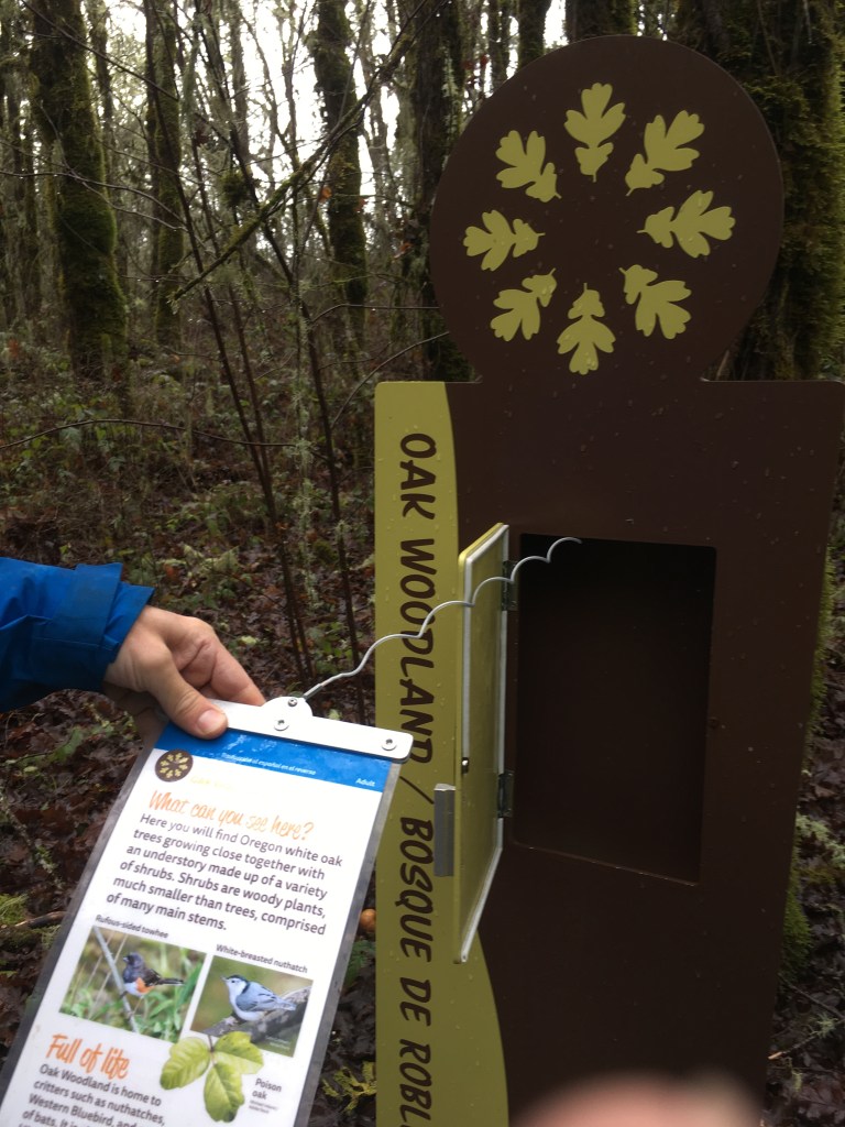 The trail had even been updated with information stands. You pull open a little door and a laminated card with information about the trees, plants and wildlife is inside.