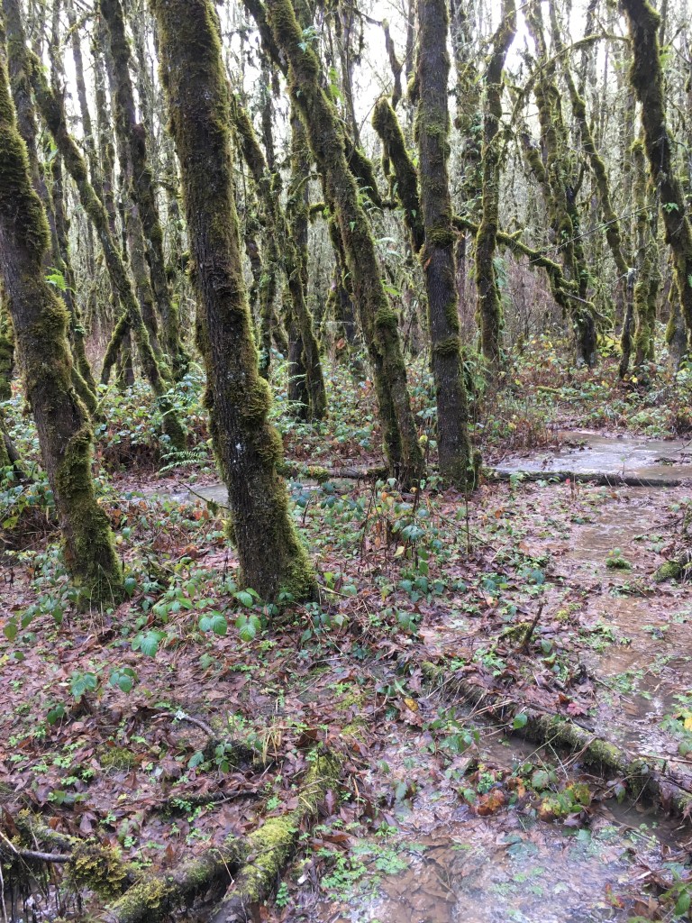 The woodpecker loop trail was not as muddy as the picture of the woods. As far as mud goes during December in the Willamette Valley, this trail is one of the better options. The trail is gravel and mostly higher than surrounding land. Don’t let the rain deter you!