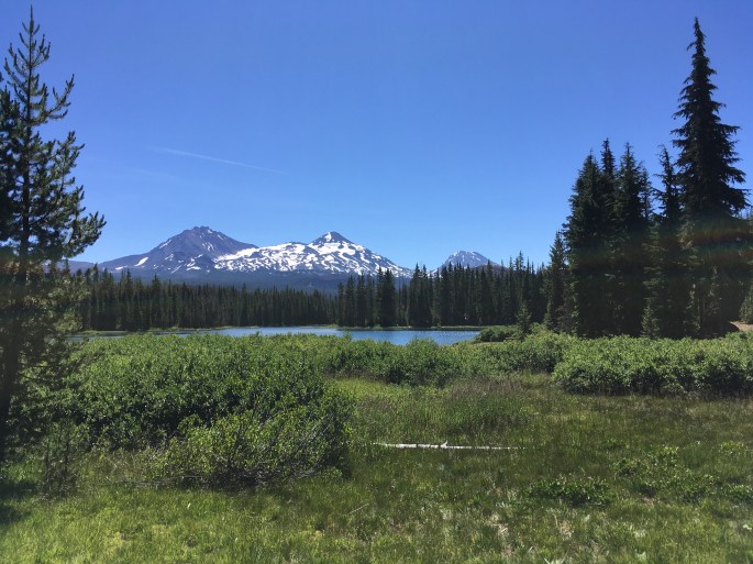 We packed everything from kayaks to remote control trucks and headed to Big Lake Campground, near Sisters, Oregon. Most of the campground is first come, first served. It was mid-week and I was foolishly hopeful. The campground was full. For those of you interested in Big Lake Campground, it shares a driveway with Hoodoo ski area and is adjacent to Big Lake Youth Camp, which happened to be one of CD’s re-supply stops when he hiked the PCT. The campground was crowded and the sites were small. Other than feeling bad about driving all that way and not getting a campsite, I wasn’t too disappointed to not camp there.