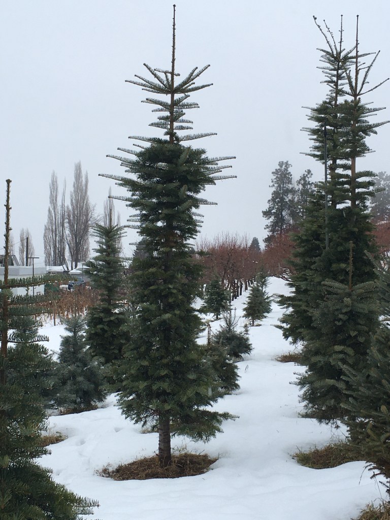 This is how pretty much every tree looked: A perfect Christmas tree shape on the bottom, a long bare spot and then another little mini Christmas tree shaped spot.