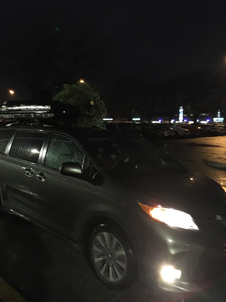 Later the same day: CD and the tree pulling up to the sidewalk to get me. #vanlife
