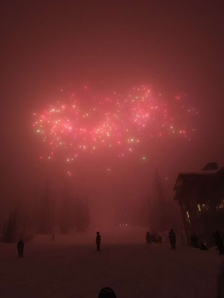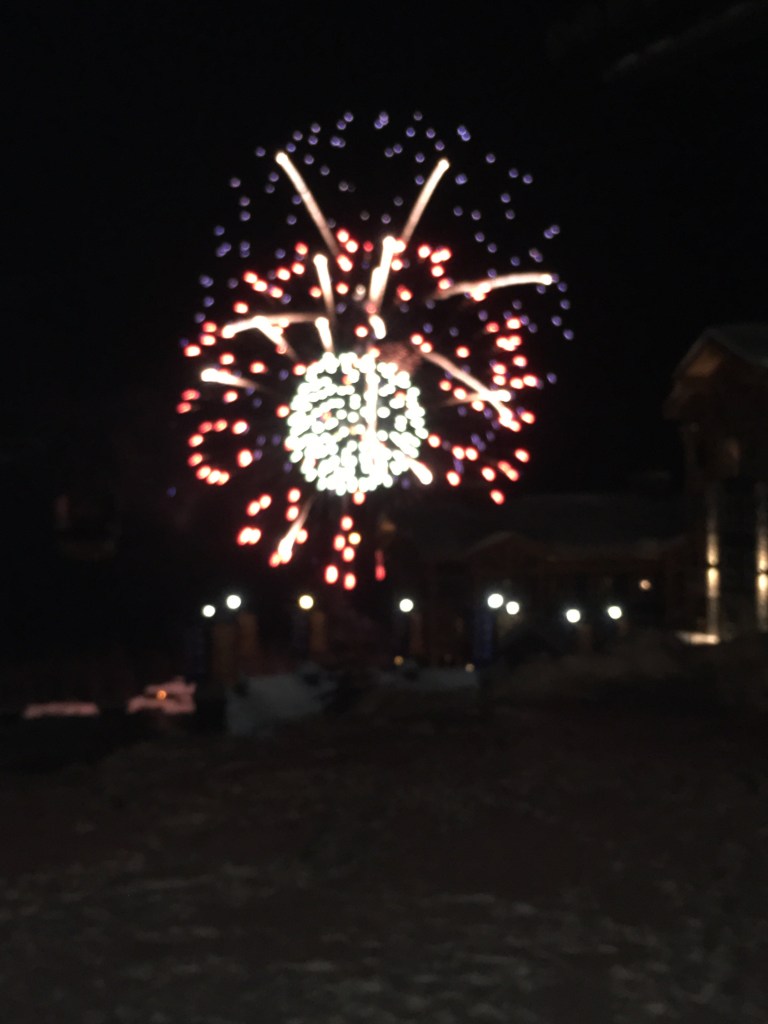 Christmas Eve fireworks. Our condo is to the left and we are at the main lodge looking up the run.