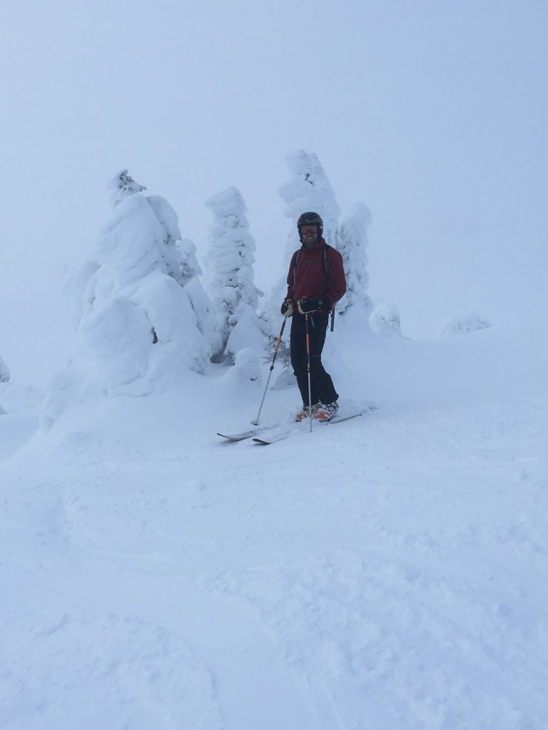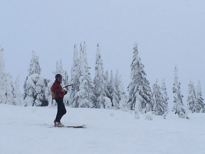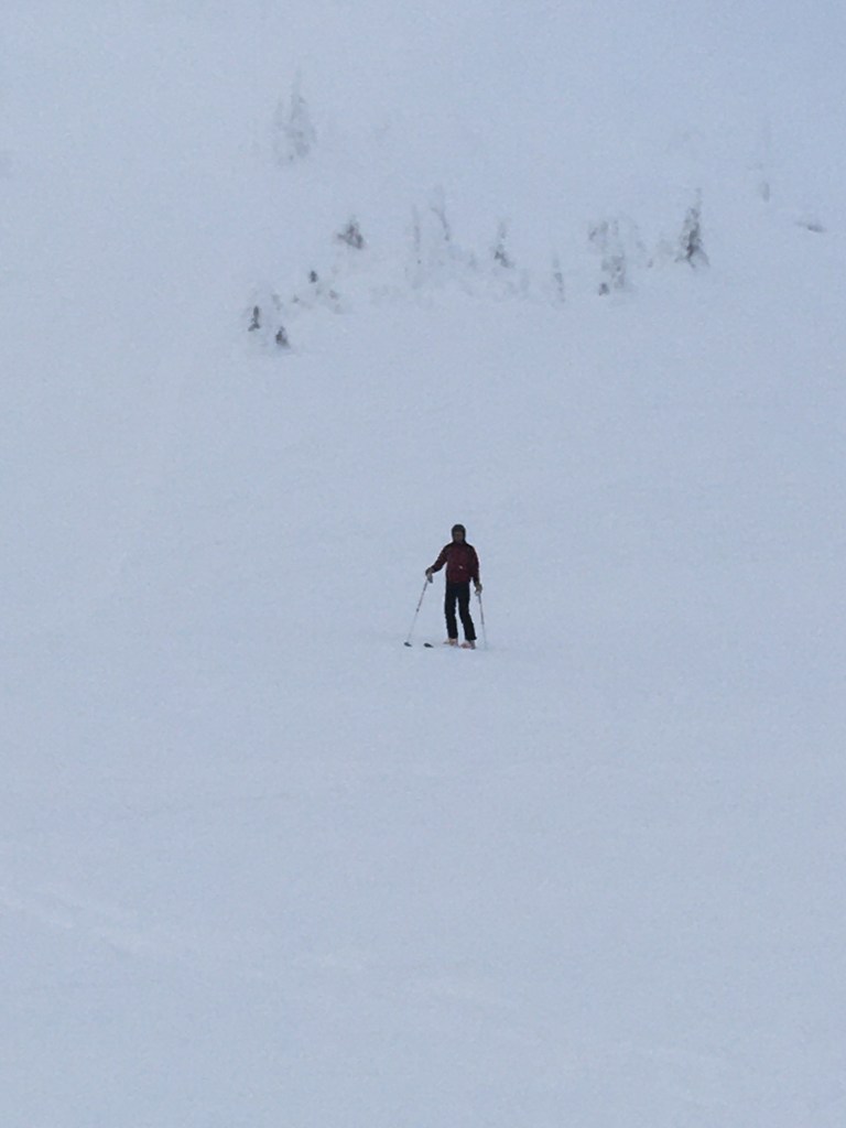 There was tons of un-trackedpowder. In-bounds was less crowded than out-of-bounds at many resorts I have skied. CD and I were with only a handful of people on the T-Bar. We were alone on the way down. After a bit, one other skier came by and asked us if he was going the right way to catch the Powder Chair. We didn’t really know and we didn’t see him again. Big White has more acreage and fifty percent less skiers than the resort where CD and I met. This was obvious as I was making fresh tracks after just being told “last chair”. Even CD let out a “whoo-hoo” now and then!. Skiing at Big White was super fun!