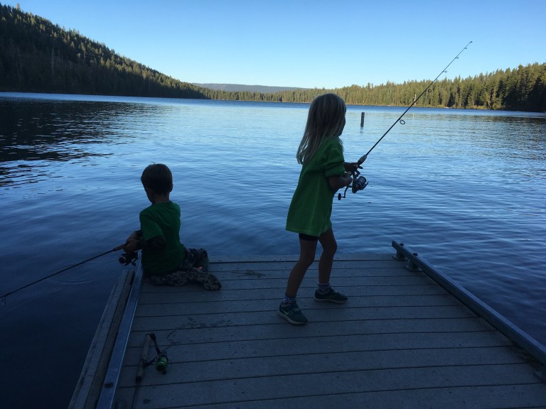 We all agreed to drive East towards Sisters. CD had eyed up a few places and chose Suttle Lake mostly because we were short on time. It wasn’t as far as Sisters or Bend but was still on the dry side of the pass. There were several National Forest campgrounds and had easy access from the highway. Although he is not a fisherman, CD was kind enough to suggest that the kids and I bring our fishing poles and try our luck. We were sold.